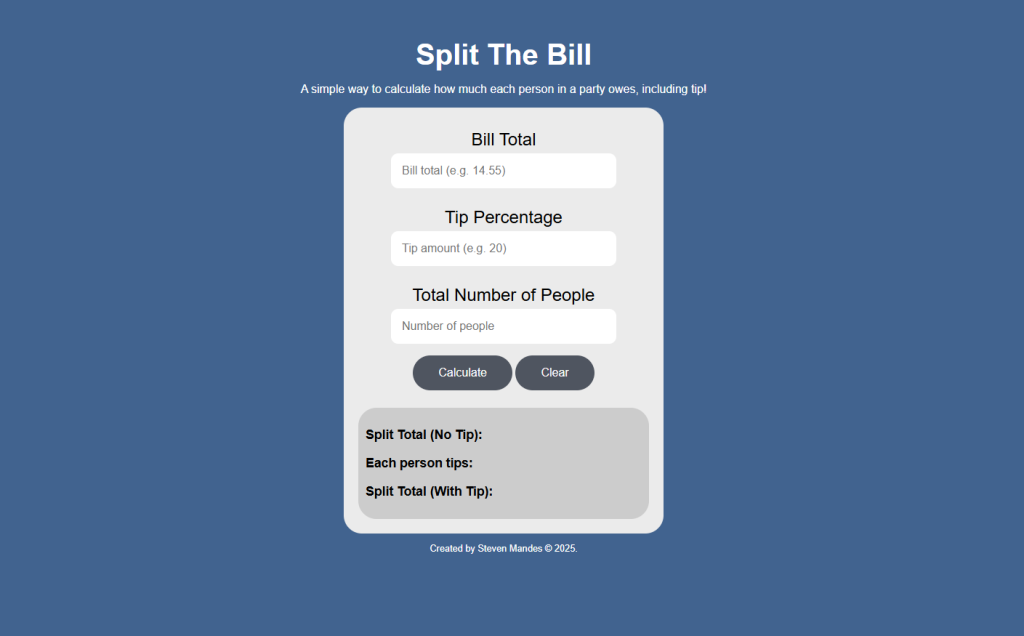 Split The Bill is a lightweight, responsive web app designed to make group expense sharing…